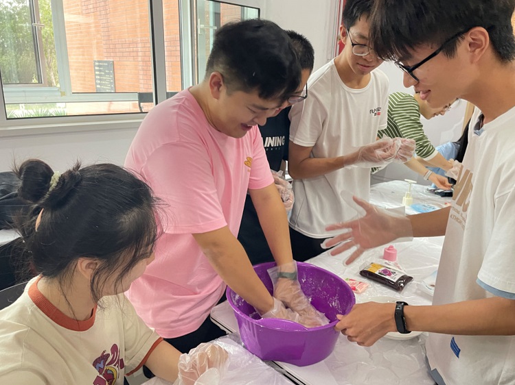 作为研究生新生,大部分同学是第一次在天津迎接中秋佳节。团支部负责人带领全体同学分组搅拌面团、包馅料、压模具,从不知从何下手到“流水线工程”,同学们既锻炼了动手实践能力,也与新同学互相熟悉。